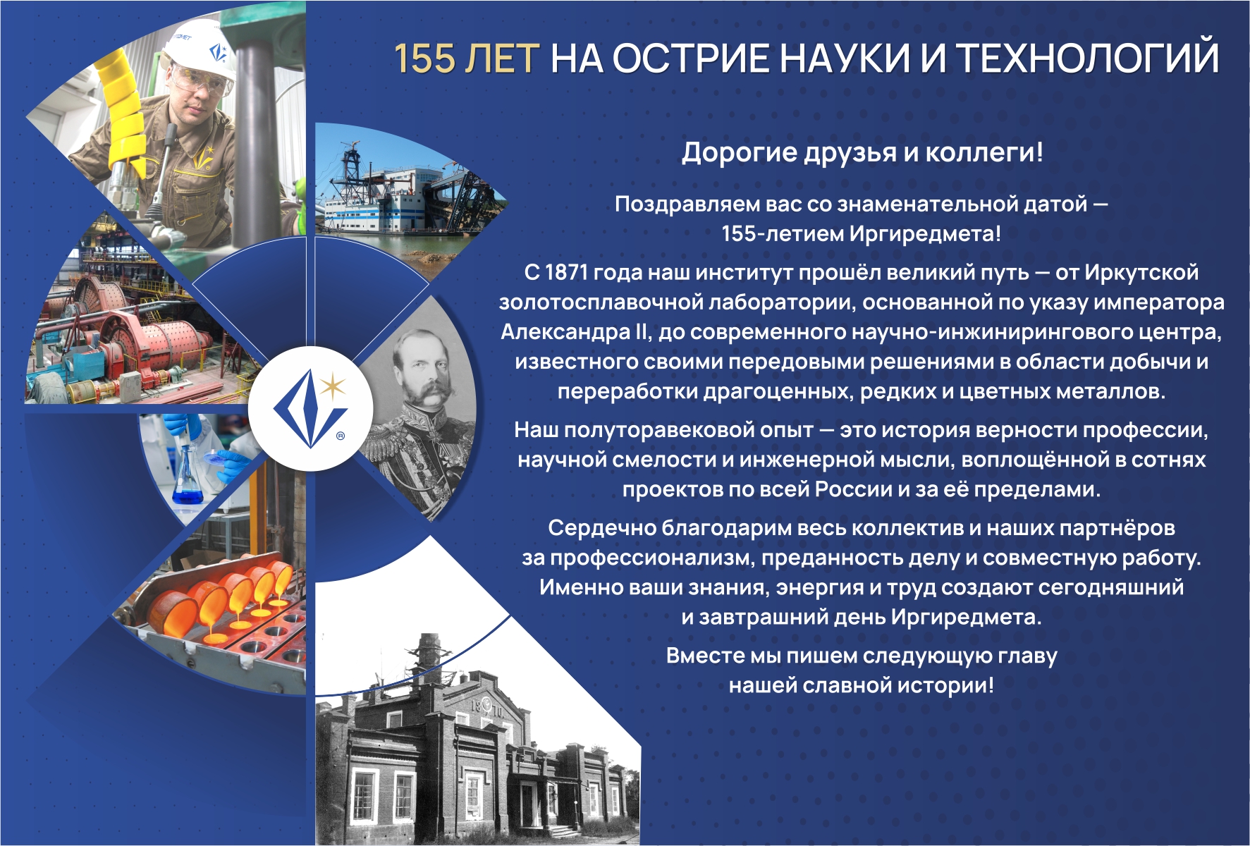Его 155-летняя история — это история служения богатству земли от Сибири до Средней Азии, воплощённая в металле, технологиях и вере в силу науки и труда. Без него невозможно представить не только прошлое, но и будущее российской минерально-сырьевой базы.
